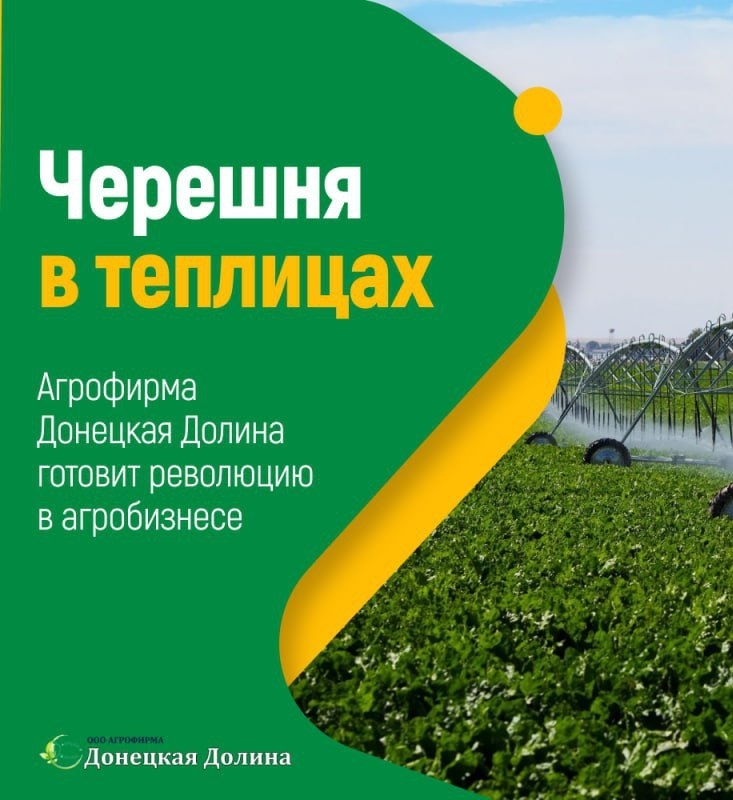 ✏️ Агрофирма Донецкая Долина делает агробизнес ещё более выгодным с уникальным проектом по выращиванию черешни в теплицах. С помощью закрытого грунта, компания сможет собирать урожай в апреле — когда черешни на рынке почти нет, а её цена достигает 5000–6000 рублей за килограмм.