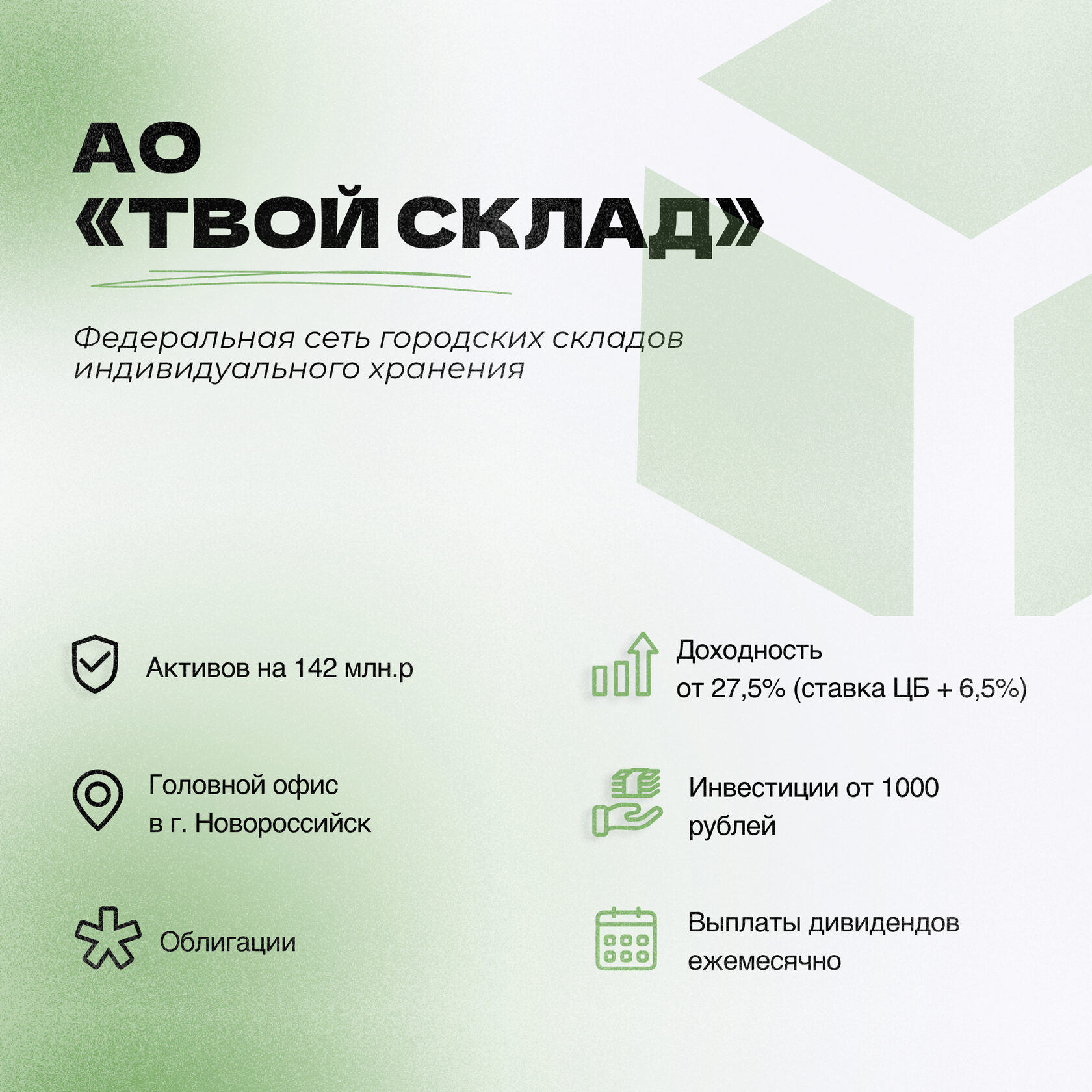 🔹«АО Твой Склад» — Федеральная сеть городских складов для хранения личных, сезонные вещей и бизнес-имущества. #ТвойСклад